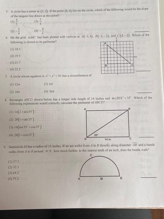 Solved A Unit 9 Circles Measurement And Modeling Common Chegg Com